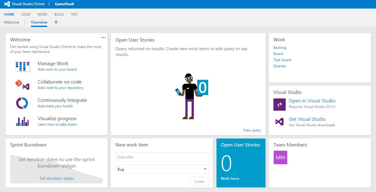 Unfortunately, my time is currently too limited to continue work on my own projects often. But sometimes if I got the time I am not able to connect to my codebase. Sometimes I just wanna note something that comes to my mind or read again what I already wrote to think about it again. Recently, I heard from a colleague that you can use Visual Studio Online for free as Team Foundation Server if the team is smaller than 5 people. I thought I should give it a try and see if the system might resolve some of my problems.