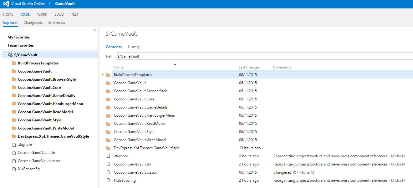 I will elaborate more features such as automated builds in future. Visual Studio Online is free of charge up to a team size of 5 persons. The source code is stored hidden on European servers and thus worthwhile also for commercial projects.